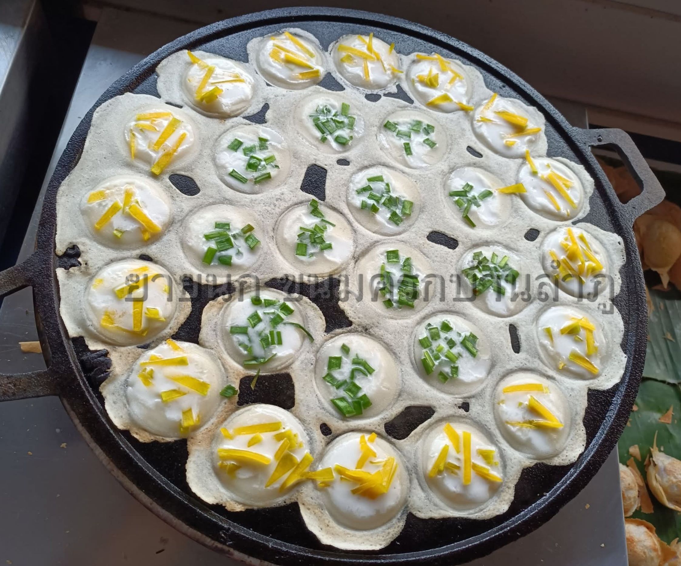 1.ขนมครก(ต้นหอม, ข้าวโพด, เผือก, ฟักทอง, มันม่วง)