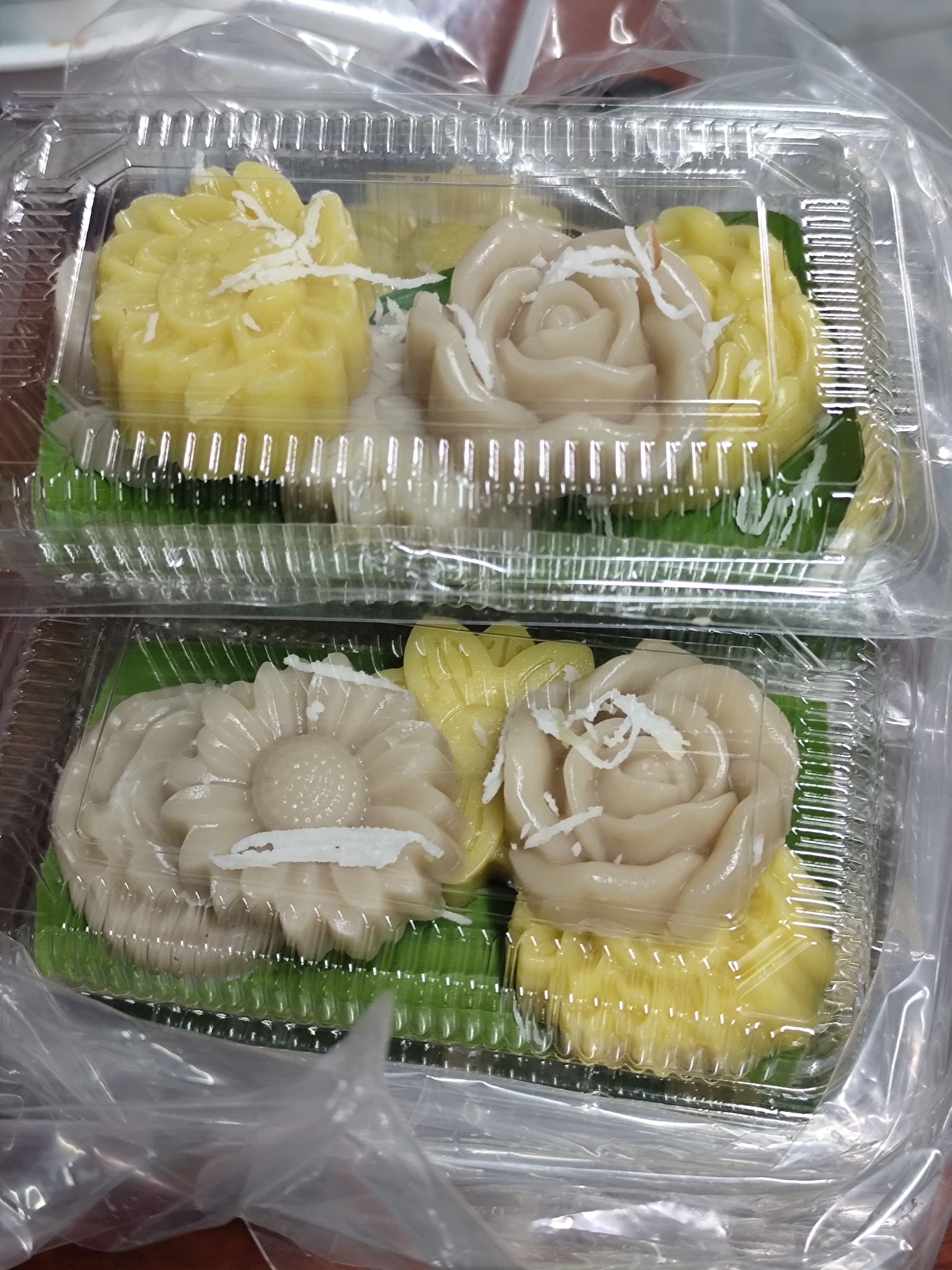 2.ขนมบ้าบิ่นมะพร้าวอ่อน (แป้งมันม่วง/ใบเตย)