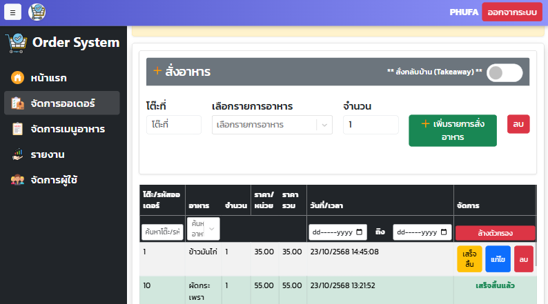 - ระบบสั่งอาหาร + สั่งกลับบ้าน