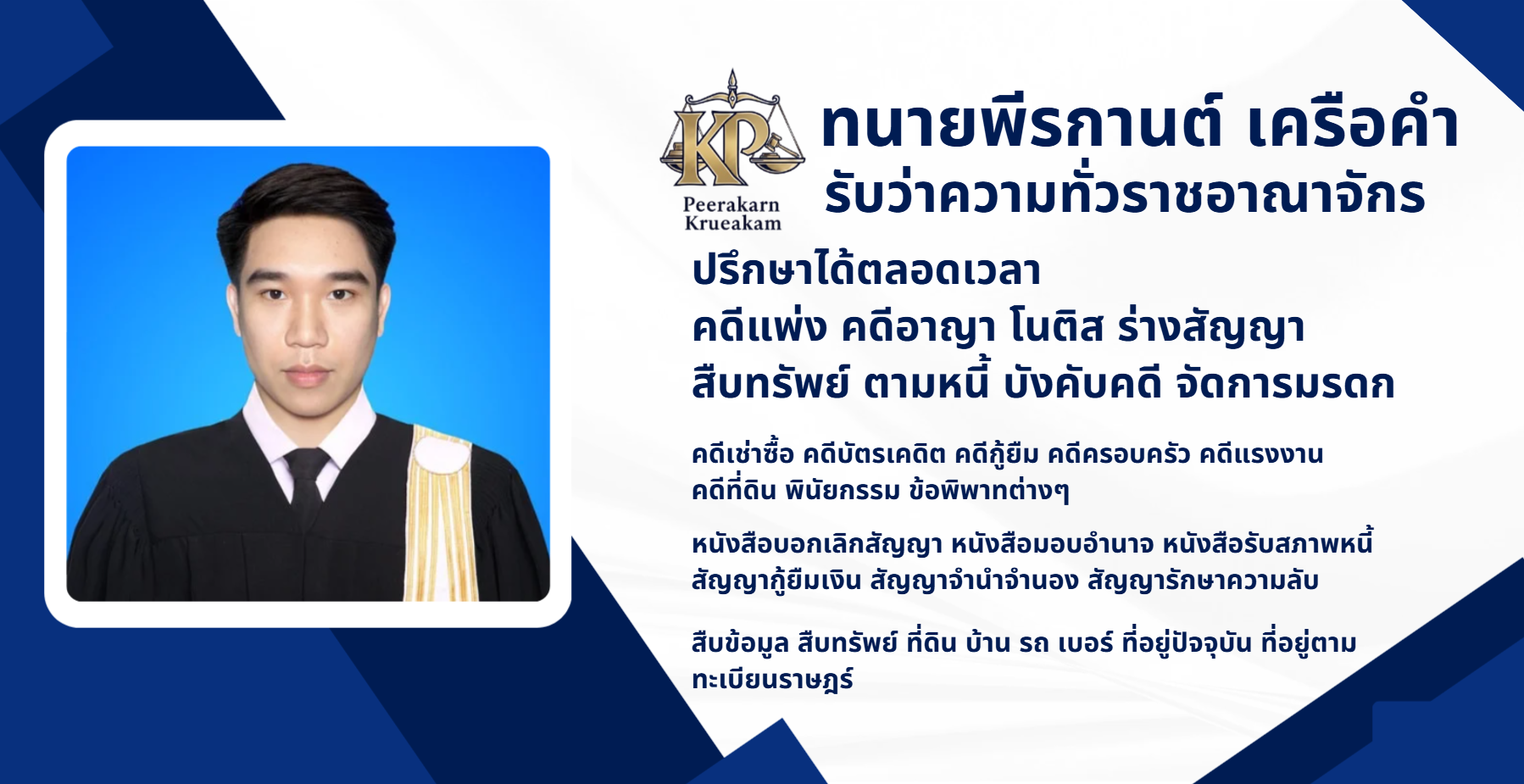 ปรึกษาได้ตลอดเวลา ทวงหนี้ สืบทรัพย์ พินัยกรรม ดำเนินคดีต่างๆ