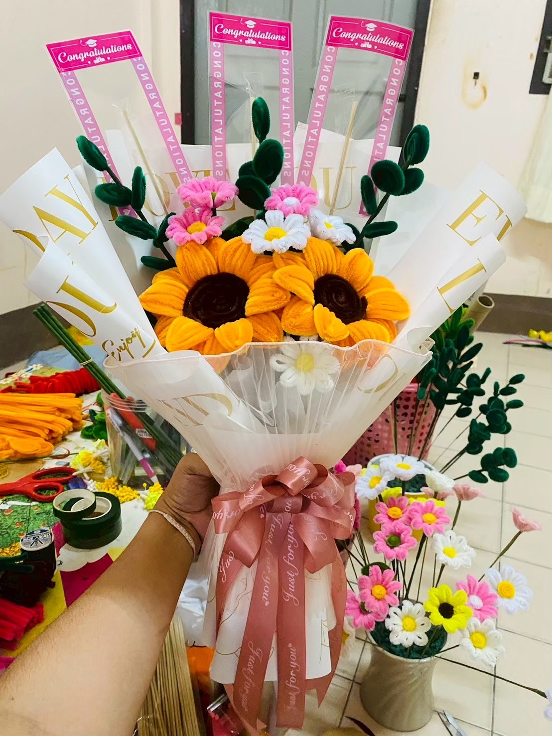 - ทำช่อดอกไม้จากลวดกำมะหยี่ ช่องานวันเกิด ช่อรับปริญญา ช่อแสดงความยินดีในโอกาสต่าง ๆ กระเช้าดอกไม้ เเจกันดอกไม้่ และรูปแบบอื่น ๆ ตามที่ลูกค้าต้องการ
