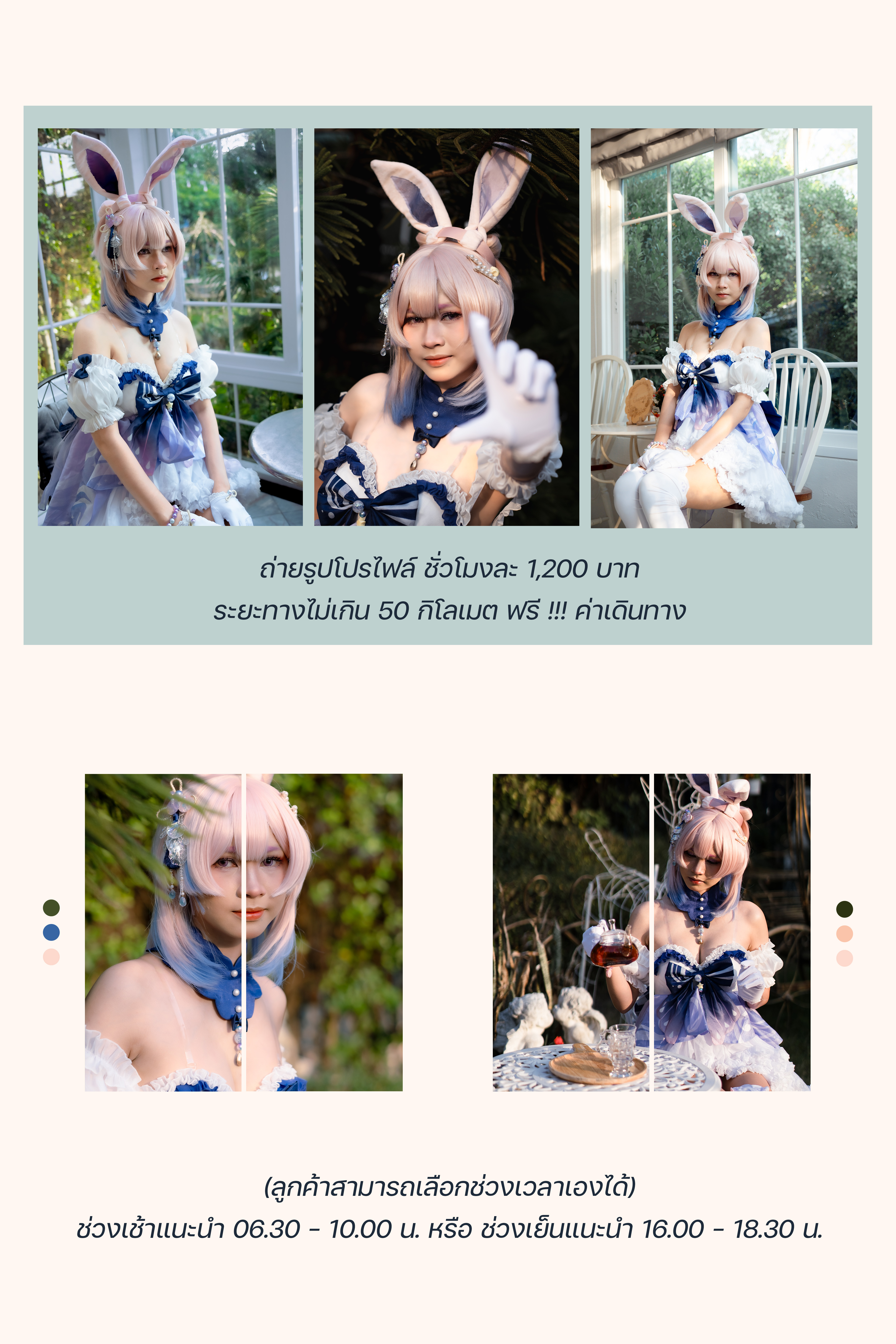 สิ่งที่ลูกค้าจะได้รับ 1.ถ่ายภาพไม่จำกัด 2.แต่งสีสวยงานทุกใบ 3.ส่งงานผ่าน Google Drive (หรือตามตกลง) 4.ส่งรูปภายใน 7-14 วัน (หรือตามตกลง)