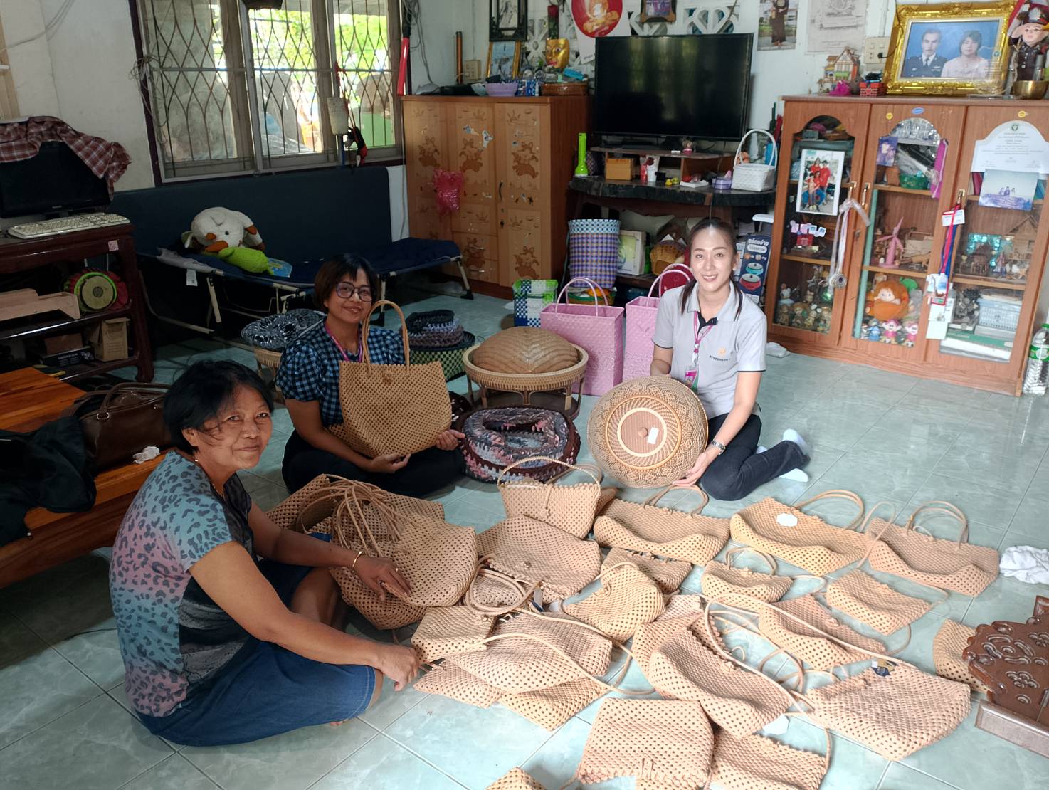การสานตะกร้าจากเส้นพลาสติกและหวายเทียม