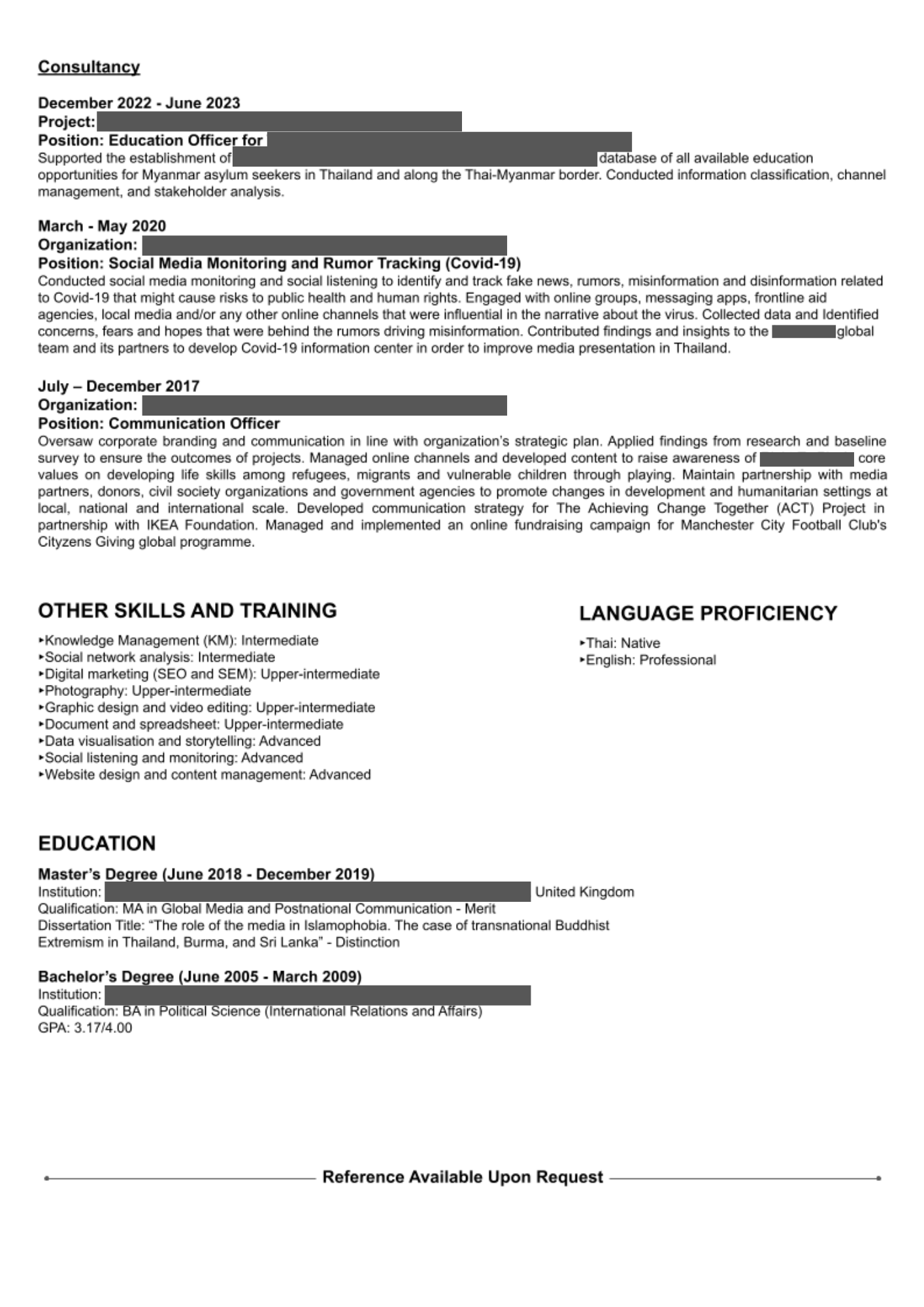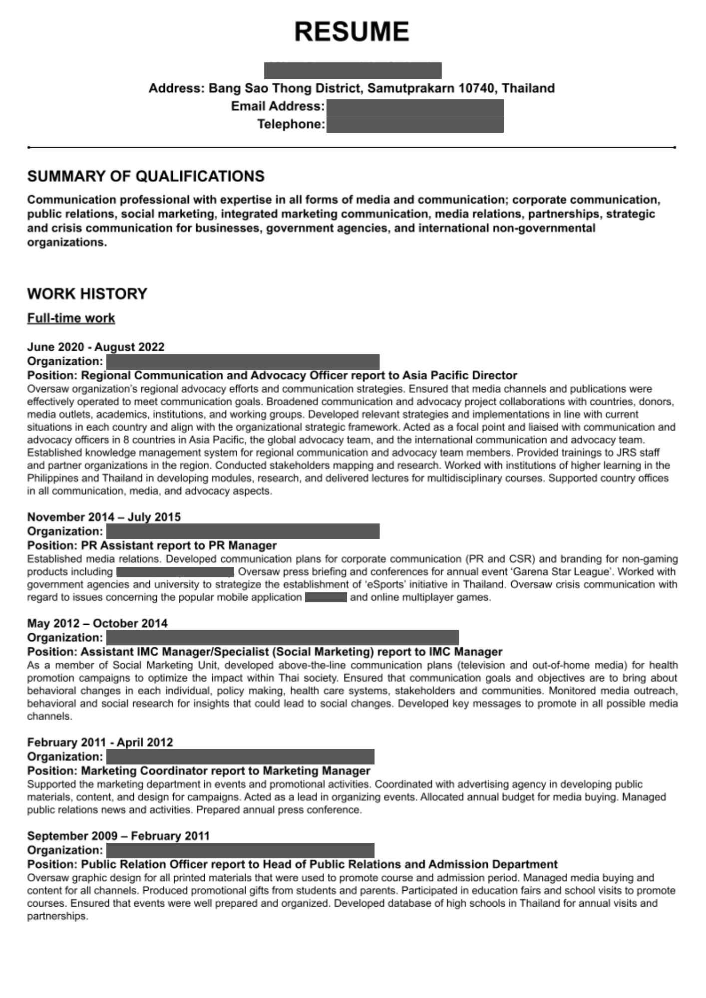 รับแปล Resume, CV และ Cover Letter จากไทยเป็นอังกฤษ หรือ อังกฤษเป็นไทย