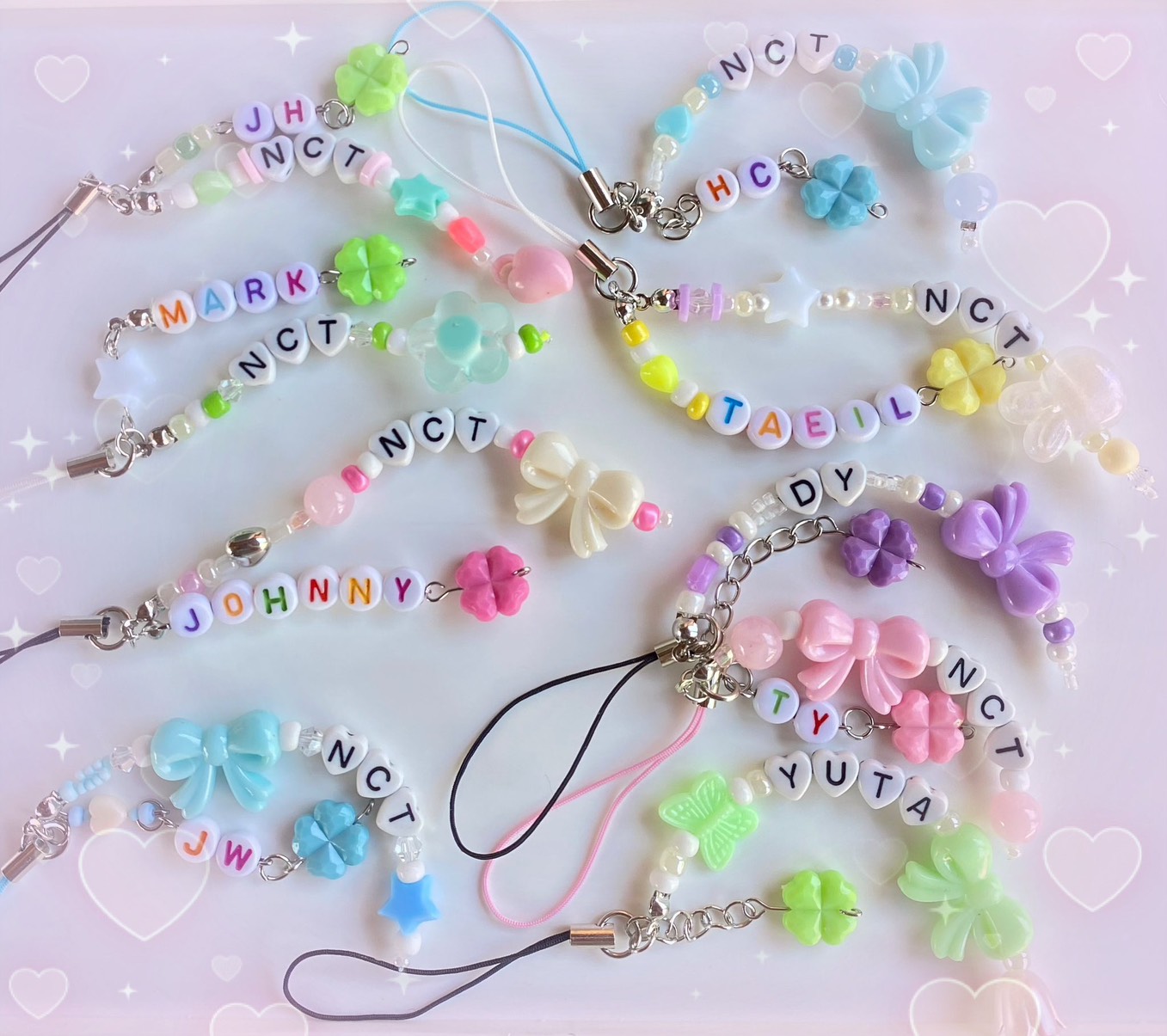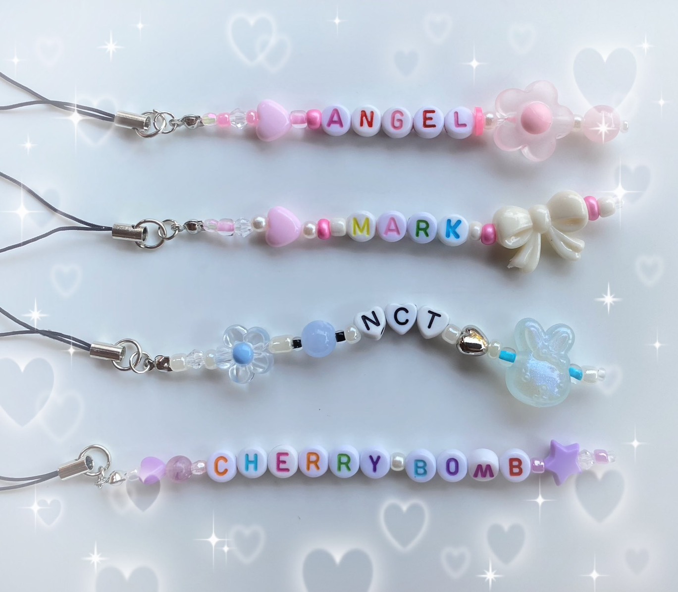 เชือกเทียนเกาหลี, สายโซ่เงิน, ไหมยืด, คริสตัลใส และสายคล้องพวงกุญแจ