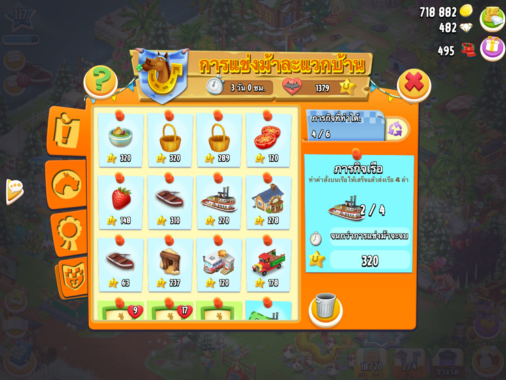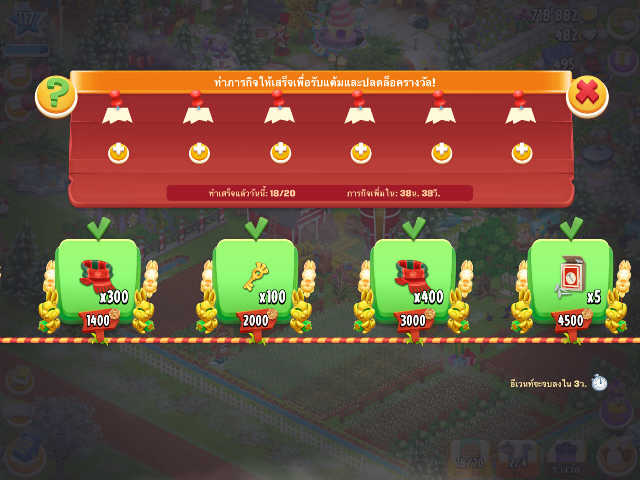 จะได้รับของผลิตที่เพิ่มขึ้น ของอัพคลัง เหรียญเพิ่มขึ้น ของตกแต่งล่าสุด สำเร็จภารกิจทุกภารกิจ ทันอีเวนต์ใหม่ๆ