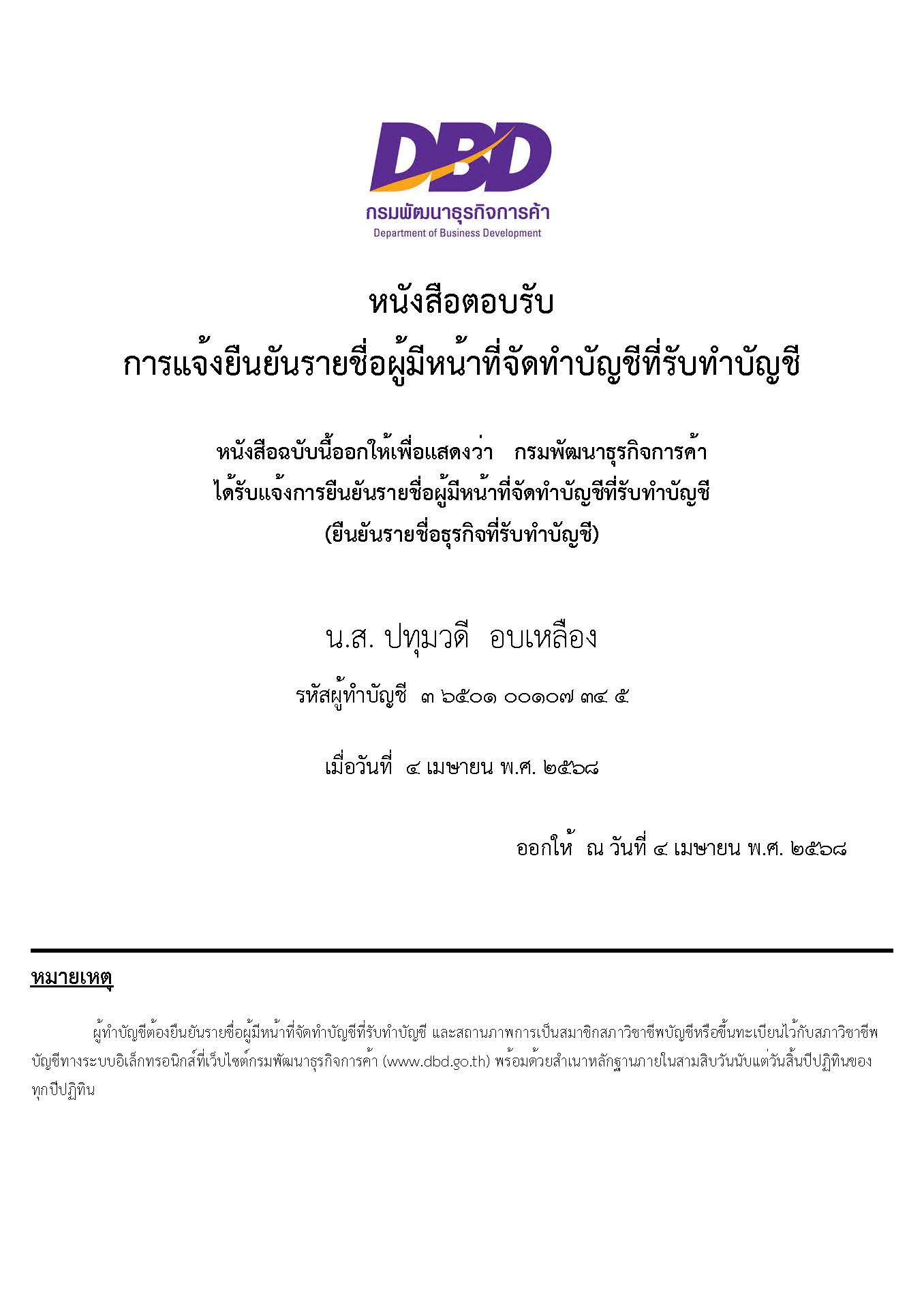 - งานบัญชีถูกต้องตามหลักการมาตราฐานบัญชี