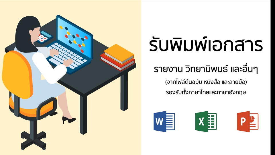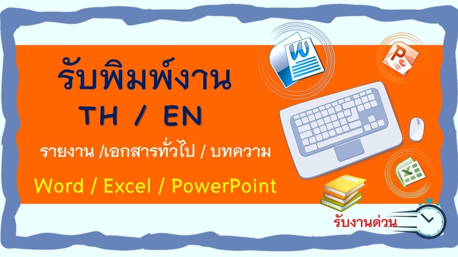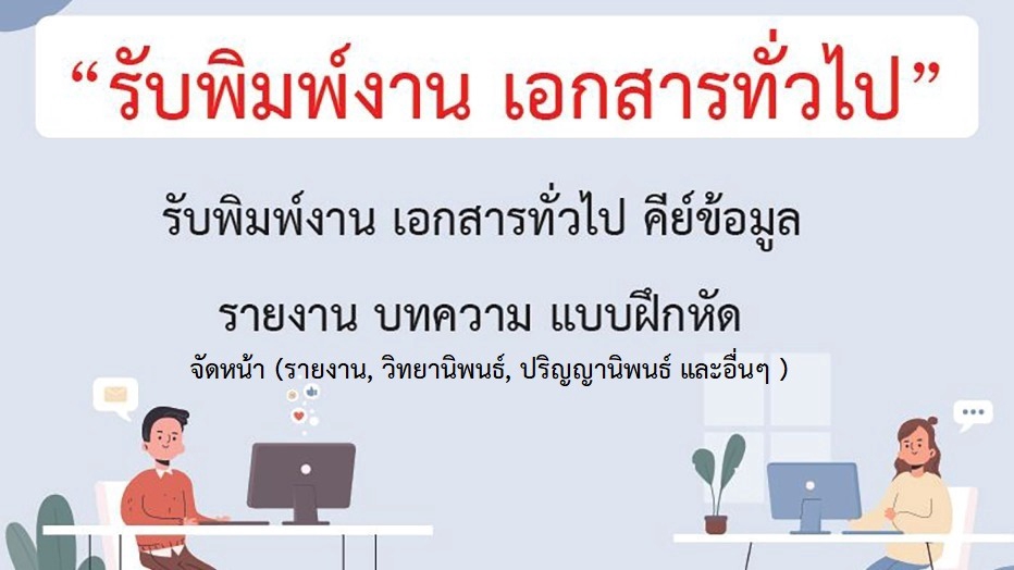 รับพิมพ์งานเอกสารต่าง ๆ เช่น วิจัย รายงาน โครงการ คีย์ข้อมูลลงใน Excel สร้างกราฟ กรอกข้อมูลลงเว็บไซต์